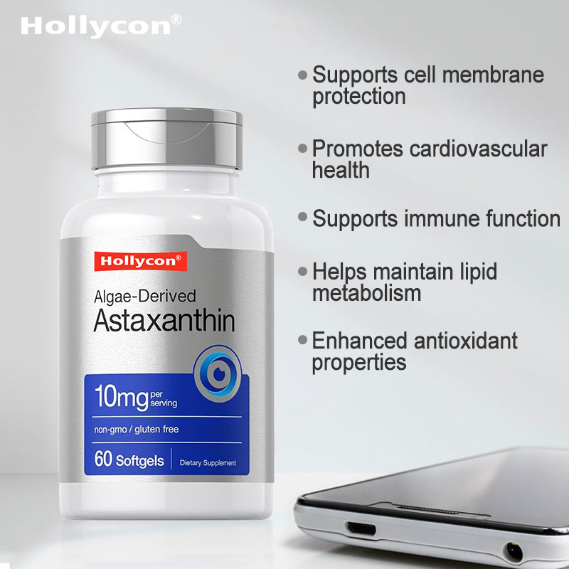 Hollycon Astaxanthin Softgels sont conçus pour soutenir votre santé globale avec une formule antioxydante puissante dérivée d'algues marines.10 mg d'astaxanthine pureCe supplément aide à combattre le stress oxydatif, soutient la santé cardiovasculaire et favorise la fonction immunitaire.tout en aidant également dans le métabolisme des lipides pour la vitalité globale.