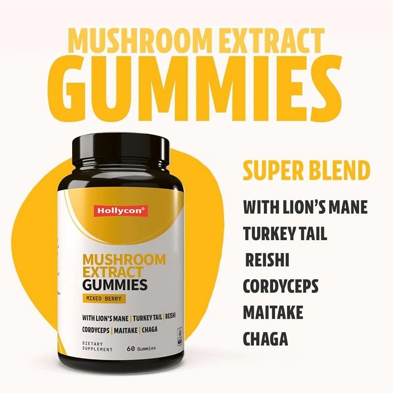 Extrait de crinière de lion, de reishi, de cordyceps, de maitake, de chaga et de champignon à queue de dinde.