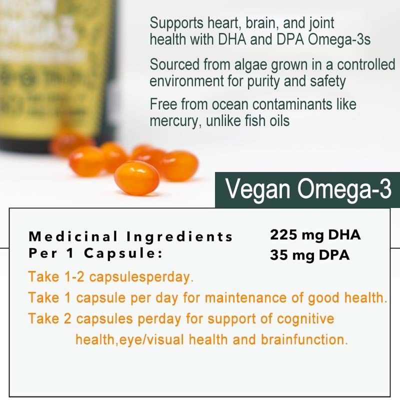 Les gélules douces végétaliennes oméga-3 DHA + DPA sont fabriquées à partir d'algues cultivées dans un environnement contrôlé, fournissant une source végétale d'acides gras oméga-3.Cette huile d'algues de haute qualité est exempte de contaminants comme le mercure, assurant un complément sûr et pur pour la santé du cœur, du cerveau et des articulations.