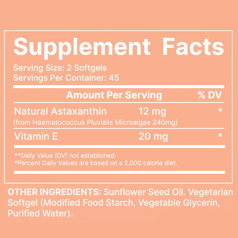 12 mg d'astaxanthine naturelle + 20 mg de vitamine E créent un réseau antioxydant liposoluble pour une protection 3 fois plus longue.