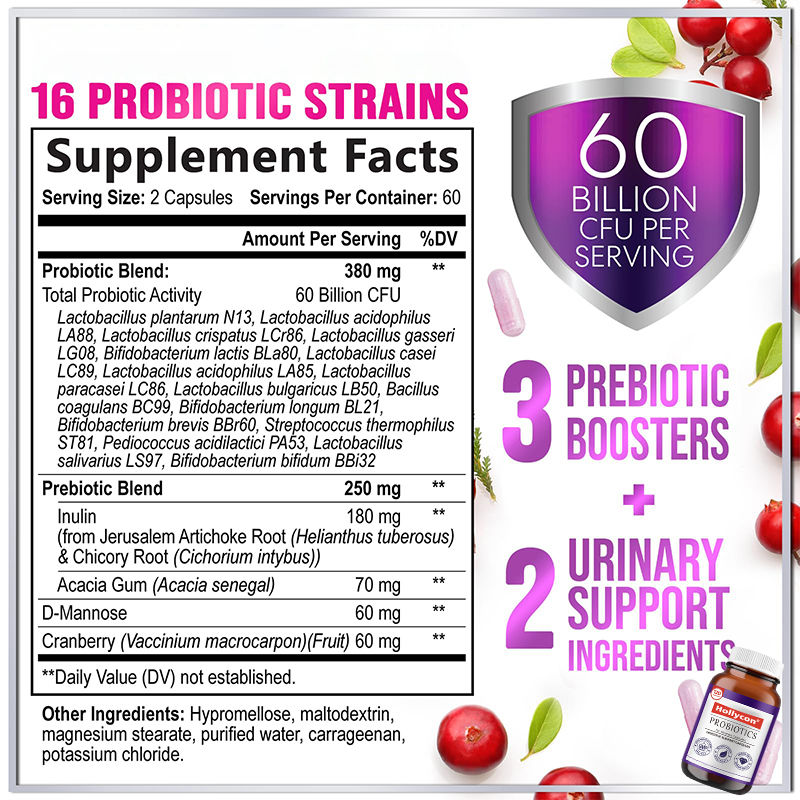 Étiquette d'usine des capsules de soutien digestif Supplément prébiotique et à la canneberge pour femmes utilisant un mélange puissant de probiotiques