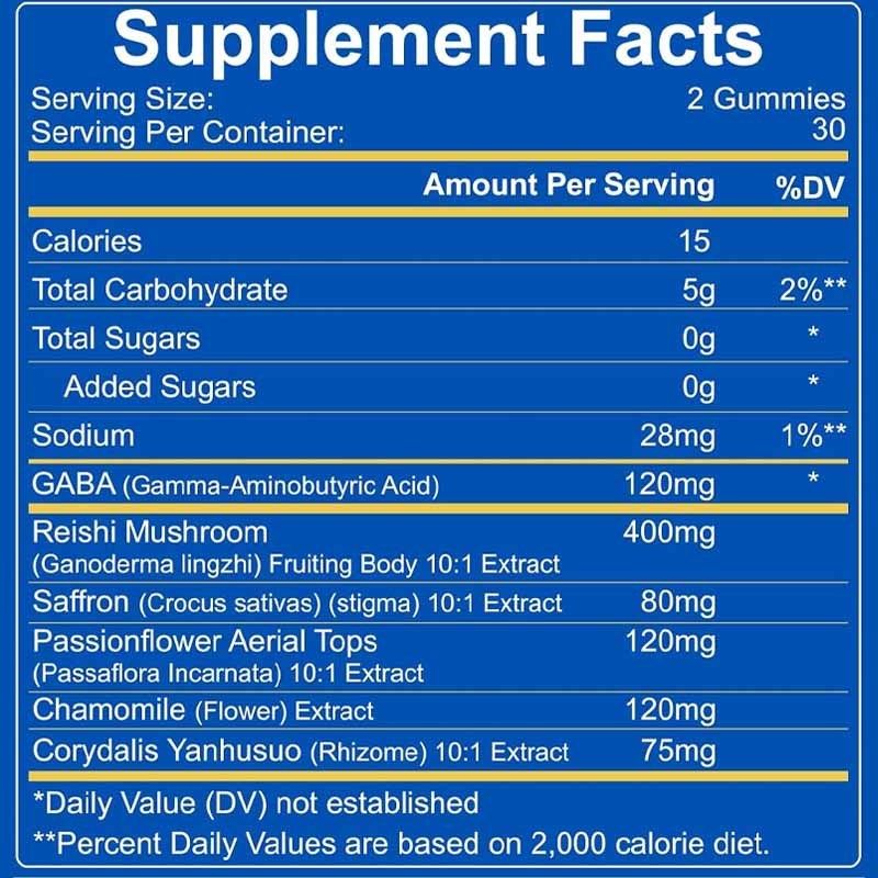 Ingrédient principal:GABA, champignons Reishi, safran, fleurs de la passion